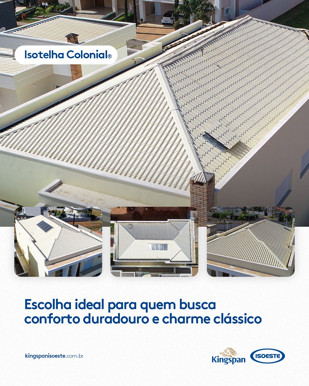 Inspiradas no design tradicional, as telhas coloniais combinam estética sofisticada com alta eficiência térmica. São ideais para construções que necessitam de um visual clássico sem abrir mão da tecnologia moderna.