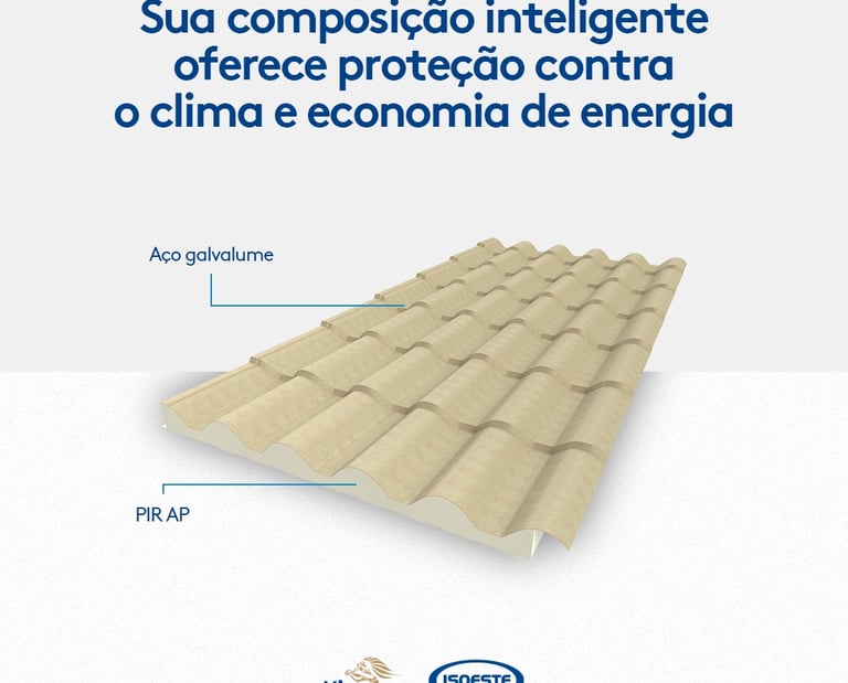 Fabricadas com núcleo de poliuretano ou EPS, essas telhas garantem isolamento térmico e acústico superior, proporcionando mais conforto e eficiência energética para edificações residenciais, comerciais e industriais.