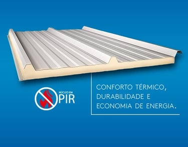 Fabricadas com núcleo de poliuretano ou EPS, essas telhas garantem isolamento térmico e acústico superior, proporcionando mais conforto e eficiência energética para edificações residenciais, comerciais e industriais.